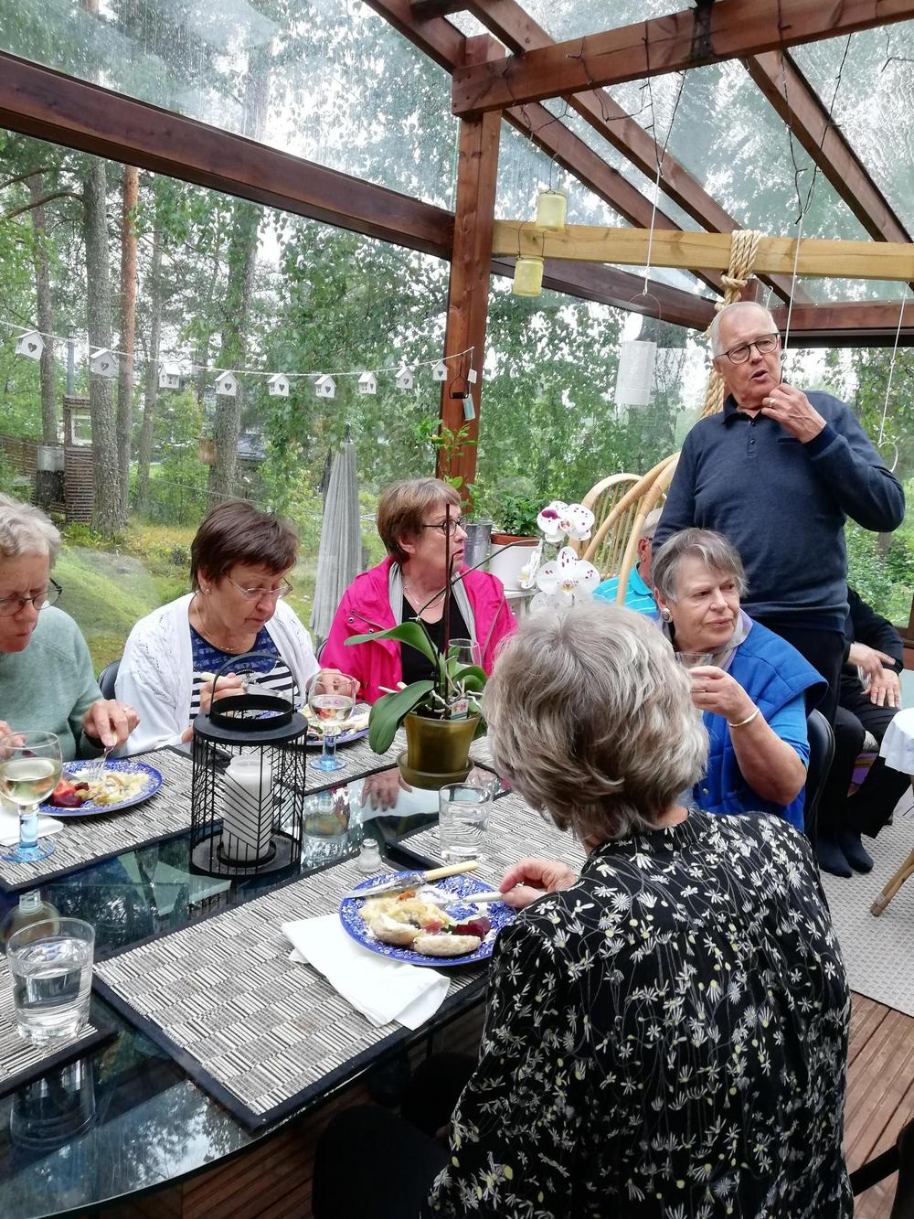 Hyväntuuliset korttipelikerholaiset malttoivat hetken tauottaa ja ryhmittyä kuvaan! Ettei vaan kukaan nähnyt toisten kortteja ?